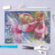 Farbenfrohe, skurrile und künstlerische Acrylmalerei ,Santa spielt Harfe im Mondschein ,eine Eule,Blumenschmuck,Winterspielzeug,Kinderspielzeug,Heilige Beeren in kräftigen Rot-, Grün-, Weiß-, Blau- und Gelbtönen. von Bulgan Lumini (c)