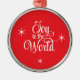 This premium metal ornament is shown in red and white with a stars Joy to the World print.