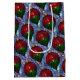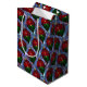 A pretty red and green bauble ornament against a blue stained glass style pattern decorates this gift bag. AI-generated by IveyCottage.