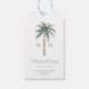 The perfect gift tag for your beach wedding features a beautiful monogram palm tree design. This design has a watercolor image of a palm tree with Christmas decorations. Colors used include, slate blue, forest green, ivory and tan.
