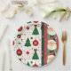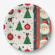 Add a festive touch to your holiday celebrations with this Christmas paper plate featuring a cheerful Santa Claus and Christmas tree pattern in classic red and green colors.