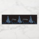 Christmas Party Blue Tree Shiny Black Elegant Water Bottle Label. Unique, beautiful, stylish design. Easy to be personalized. Font style, size and colors can be changed. Matching items are available.
