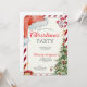 Elegant invitation for a Christmas party in shades of red with an illustration of a ornaments