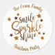 Weihnachts Party Gold Klassische Rundsticker. Lächeln, Sparkle und Shine Ein Weihnachtsaufkleber für Ihre Feierlichkeiten Einladungen. Entworfen mit hellen und dunkelgoldfarbenen Text und Akzenten auf einem weißen Hintergrund, und Ihrem Namen. Um Ihre persönlichen Daten zu personalisieren, fügen Sie einfach Ihren Text in unsere einfache Vorlage ein und ersetzen das Beispiel. Schauen Sie sich die passenden Accessoires für Smile, Sparkle & Shine Weihnachten Party an.
