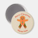Dieser phantastische Magnet zeichnet sich durch einen niedlichen Cartoon eines bunten Lebkuchenmannes aus, der rote und grüne Knöpfe, ein großes Lächeln auf dem Gesicht und rote und grüne Taschen um seine Beine hat, bereit für ein Weihnachtsfeiertag.