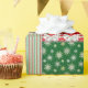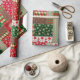 Dieses Papier im Patchwork-Stil ist für die Feriensaison konzipiert. Das Design besteht aus verschiedenen rechteckigen und quadratischen Segmenten, die jeweils unterschiedliche Urlaubsmuster aufweisen. Das Verpackungspapier verbindet diese Muster zu einem zusammenhängenden, fröhlichen und visuell ansprechenden Design, das sich perfekt zum Verpacken von Geschenken während der Ferienzeit eignet.