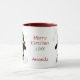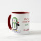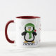Hier ist eine niedliche Holiday Tasse, die einen Schlittenpinguin und einen eigenen personalisierten Text enthält. Der Pinguin ist in einem Holiday Green Schal und Hut gekleidet. Er sitzt auf seinem Schlitten und ein paar Schneeflocken treiben um ihn herum. Das Bild wird zweimal wiederholt. Dazwischen befinden sich drei Textfelder für den benutzerdefinierten Text. Ideal für Groß und Klein während der Weihnachtszeit!