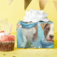 Adorable Piebald Pitbull Welpen auf hellblauem Hintergrund, mit einem blauen Winterschal tragen.. bestes Papier, um Ihre Geschenke in diesem Jahr zu verpacken, ein Muss für Pillenfamilien oder Hundefreunde - - A © WhimsicalArtwork™ original -