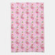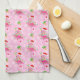 Rosa Weihnachtsflamingos mit Saitenleuchten und eine Weihnachtsmannmütze auf rosa Hintergrund mit Schneeflocken und festlich dekorierten Palmen. Hier auf einem Küchenhandtuch gezeigt. Sie können das Muster einfach nach Ihren Vorlieben anpassen und Ihre Lieblingsfarbe auswählen. Es ist ein niedliches Weihnachtsfest mit einem tropischen Flair!