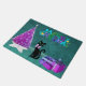 Christmas Pink Tree Black Cat Wrapped Gifts Teal Fußmatte