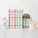 A merry and bright hand-drawn Christmas plaid gift wrapping paper. Cute gift wrapping paper roll for Christmas gifts and craft projects in preppy shades of pink, green, red turquoise and white.