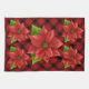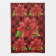 Fügen Sie Ihrer Zuhause Wärme und Festlichkeit hinzu. Dekorieren Sie Ihre Küche mit diesem schicken und stilvollen Küchenhandtuch, das eine Illustration von fünf weihnachtlich roten Poinsettias Set vor einem roten schwarzen Karo kariert Büffel Hintergrund.