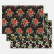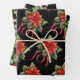 CHRISTMAS POINSETTIA, HOLLY, CANDY CANE on BLACK Geschenkpapier Set