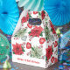 Es gibt schöne heilige Beeren, rote und grüne Poinsettien und herzförmige Ornamente mit Schneeflocken.