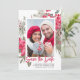 Elegante wasserfarbene Poinsettia Blume und Beeren sind in Kiefern und heiligen Ästen eingebettet. Sie schaffen einen schönen Rahmen um Ihr Foto. Save the Date ist in trendigem rotem Skript geschrieben. Ihre Namen und das Datum folgen weiter unten. Dieser Artikel ist Teil der Botanischen Hochzeitskollektion Red Poinsettia.