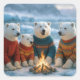 Christmas Polar Bears Around a Bonfire Quadratischer Aufkleber