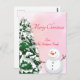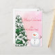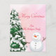 PINK WATERCOLOR CHRISTMAS POSTCARD MIT CHRITMAS BAUM UND SNOWMAN
