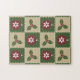 Vier Plätze in Grün und Bräune sind mit roten Ornamenten verziert, die mit weißen Schneeflocken und grünen Heiligen mit roten Beeren dekoriert sind. Weiße Nähte fügen eine dekorative Touch hinzu, die dem sich wiederholenden Muster das Aussehen eines Stepps verleiht und ein sehr gemütliches Gefühl für den Weihnachtsurlaub schafft.