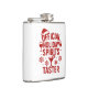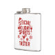 Quote: Official Holiday Spirits Taster. Red text. Decorated with glasses of wine, Santa's hat, coctail glass and snow crystals,