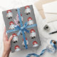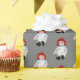 Alte Puppe mit Weihnachtskandinken in Schürze-Tasche auf grauem Hintergrund. Die Hintergrundfarbe kann geändert werden.