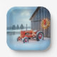Christmas Red Farm Tractor In Snow Pappteller