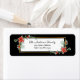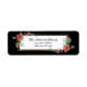 Das weihnachtliche Retourenschild zeigt elegante Blumenmotive in Aquarellen, darunter ein festlicher goldfarbener Rahmen mit roten Poinsettia-Blume und einem schwarz-weißen Hintergrund.