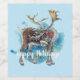 Wasserfarbener Rentier mit festlicher Schleife und heilig auf seiner Brille und anpassbarer weißer "Happy Holidays" Text auf dem Hintergrund blauer Aquarellspritze und Schnee