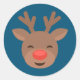 Christmas Reindeer Rudolf auf Blue Runder Aufkleber