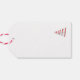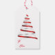 This holiday gift tag is shown in a festive Christmas ribbon tree print.