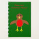 Dieser phantastische Planer zeichnet sich durch einen niedlichen Weihnachts-Robin-Charakter aus, der eine kräftig rote Brust, einen braunen Körper und kreide schwarze Augen aufweist. Es hat seinen gelben Schnabel weit geöffnet, während es einen Weihnachtslieder singt. Seine Flügel sind überdehnt, während es freudig auf Weihnachten wartet.