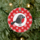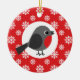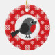 Diese Weihnachtsschmuck-Keramik zeigt ein Rotkehlchen, umgeben von Schneeflocken auf rotem Hintergrund. Es ist eine schöne Ergänzung zu Ihren Weihnachtsdekorationen.