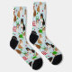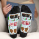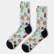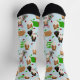 Niedliche Rough Collie Hunde in festlichen Urlaubssoutiquen, Weihnachtsmannmützen und Raute Pullover mit verstreuten Weihnachtsschmuck.