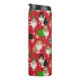 Niedliche Rough Collie Hunde in festlichen Urlaubssoutiquen, Weihnachtsmannmützen und Raute Pullover mit verstreuten Weihnachtsschmuck.