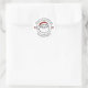 This round sticker features a black line drawing of a cute Santa Claus with a red hat within a circle, with “Merry Christmas” greeting above and a family name below, and with red dots separating the two. Both the greeting and family name can be personalized right on the product page.