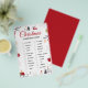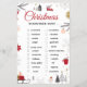 Festive Christmas scavenger hunt checklist artwork with a clean white background and charming holiday illustrations. Designed with elegant red cursive typography, surrounded by cozy winter elements like evergreen branches, snowflakes, houses, trees, a snowman, and warm holiday details. The balanced layout creates a joyful seasonal atmosphere perfect for family-friendly celebrations. All text and images are fully editable, allowing easy changes to match any style or preference.