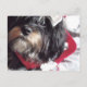 Niedlicher Shih-poo-Hund gekleidet in einer Weihnachtsmannmütze. Die Hunde heißen Bella und sie ist mein Hund. Sie ist Shih-Tzu x Poodle und immer so niedlich. Sie war nur ein Welpe, als ich letztes Jahr dieses Foto von ihr nahm. Weihnachten Shih-poo-Hund tragen und Weihnachtsmannmütze und Schal,