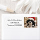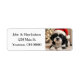 A black-and-white Shih Tzu rests on a fluffy surface, adorned with a festive Santa hat, while soft glowing lights in the background create a warm and inviting atmosphere.