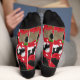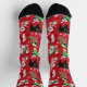 Niedliche Weihnachts-Shih-Tzu-Hunde in Schwarz, Weiß, Grau, Gold und Maskenmantel, gekleidet in festlichen Urlaubssoutiquen, Weihnachtsmannmützen und Raute-Pullover mit verstreuten Weihnachtsschmuckmustern.