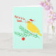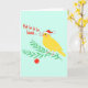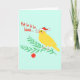 A Christmas, yellow singing canary wearing a Santa hat and perched on holiday greenery. He sings a Christmas tune of, "Fa la la la laaa..." Canary lovers are sure to enjoy this festive pet bird design for Christmastime! It's shown here on a greeting card with a custom Merry Christmas message. You can change the text to any text you prefer and choose any background color instead of the light green. Festive and unique holiday card for bird lovers!