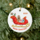 Ein bezaubernder, kräftegefärbter Cocker Spaniel Hund sitzt unter hellen Geschenkpackungen in einem verzierten Weihnachtsschlitten in Rot und Gold. Ganz oben steht ein Textfeld, das für Ihren Namen oder das laufende Jahr angepasst werden kann. Unten befindet sich ein weiteres benutzerdefiniertes Textfeld, das "Frohe Weihnachten" sagt. Beide Seiten des Ornaments haben das gleiche Bild.