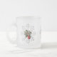 Christmas Snowflake And Shy Red Berry Frosted Glass Coffee Mug. A beautiful, delicate snowflake glistens in winter’s glow, gently resting on a bright red berry peeping through the frost. Sparkling softly, it whispers warmth and joy, Merry Christmas to all.