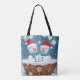 Diese bezaubernde Totentüte besteht aus zwei niedlichen Schneemännern mit rosigen Wangen und Karottennasen. Sie sitzen in einer Eiswanne und strahlen eine Aura fröhlicher Kameradschaft aus. Trage eine Touch Winterwunder, wohin du auch gehst, und lass diesen liebenswerten Schneemännern deine Begleiter im frostigen Abenteuer des Lebens zu sein.