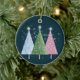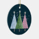 A stylish trio of sparkling Christmas trees in pink, blue and green