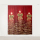 Christmas Sparkling Trees Red Gold Faux Bow Wandteppich