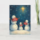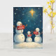 The greeting card features a trio of snowmen against a serene winter backdrop, exuding infectious cheer and festive vibes 🎅🏼🎄🎁 Their joyful expressions and whimsical details, like carrot noses and rosy cheeks, add an endearing touch. The deep indigo-teal sky dotted with stars and a radiant golden star creates a picturesque, dreamlike setting. The snowmen holding up vibrant red signs that read "Joy To The World" offer a bold contrast and convey a heartwarming message. Perfect for spreading holiday cheer, this card is sure to bring smiles and warmth to anyone who receives it.