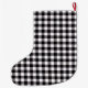 This Christmas stocking is shown in a black and white color buffalo plaid print.