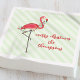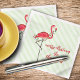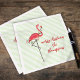 This design feature Christmas holiday cute string lights, with cute pink flamingo festive watercolor simple, minimalist elegant eleegant whimsical calligraphy, fun trendy stylish typography, and colorful bright christmas lights, bird chic celebrate celebration, Christmas holiday suppliday ES, Christmas holiday cocktail napkin, Artwork by laura Lacina, Christmas holiday get together custom