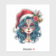 Christmas Sugar Skull Art Woman Santa Hat Festive Aufkleber