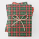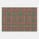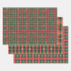 Dieses festliche Weihnachtspapier-Design zeichnet sich durch ein lebendiges rot-grünes Tartan-Muster aus, das mit symmetrisch grünen Sternexplosionen überlagert wird. Jeder Platz zeigt einen dynamischen Kontrast von Ferienfarben und -texturen.