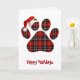 Christmas Tartan Plaid Dog Paw Print and Hat Karte